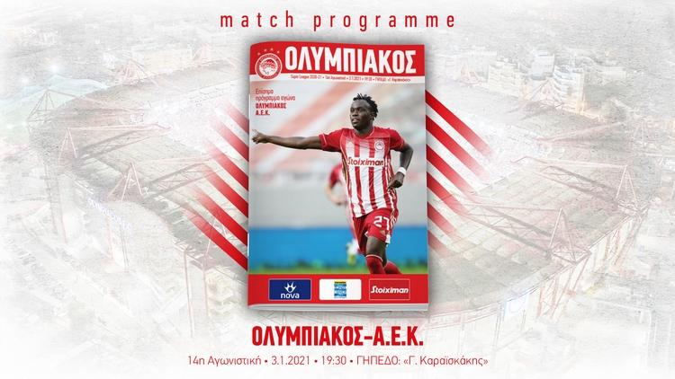 Στον διαδικτυακό αέρα βρίσκεται από το μεσημέρι της Κυριακής (3/1) το επίσημο Match Programme της αναμέτρησης Ολυμπιακός-ΑΕΚ για τη 14η αγωνιστική της Super League.