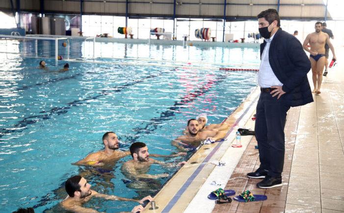 Στο περιθώριο της επίσκεψης του κ. Αυγενάκη στην κοινή προετοιμασία των εθνικών ομάδων πόλο ανδρών Ελλάδας και ΗΠΑ, εξετάστηκαν με την πρόεδρο του ΕΑΚΝ Αγίου Κοσμά, Μερόπη Μοσχογιάννη, τα μέλη της διοίκησης, τους Ολυμπιονίκες Χρύσα Μπισκιτζή, Κυριάκο Γιαννόπουλο, Σπύρο Γιαννιώτη, αλλά και τον πρόεδρο των εργαζομένων στον Άγιο Κοσμά, Μηνά Χατζηαντωνίου, όλες εκείνες οι ενέργειες που δρομολογούνται άμεσα στο κλειστό κολυμβητήριο, όπως οι αντικαταστάσεις: