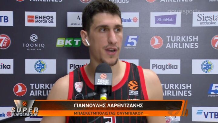 Ο Γιαννούλης Λαρεντζάκης έκανε σπουδαία δουλειά σε άμυνα και επίθεση για τον Ολυμπιακό στο Τελ Αβίβ και οι Ερυθρόλευκοι έφυγαν με το ροζ φύλλο αγώνα από την έδρα της Μακάμπι.