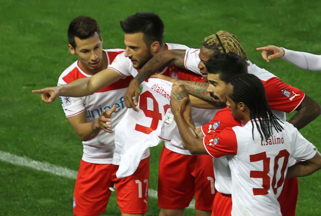 Οι Ερυθρόλευκοι πήραν το προβάδισμα στο σκορ με βολίδα του Ανδρέα Σάμαρη στο 33′, με τον Έλληνα χαφ να αφιερώνει το τέρμα του στον άτυχο Μάικλ Ολαϊτάν, ο οποίος κατέρρευσε στο ντέρμπι με τον Παναθηναϊκό στο Καραϊσκάκη, στο οποίο οι Πράσινοι επικράτησαν με 3-0, με τον Ολαϊτάν να επισκιάζει τα όσα έγιναν στο ντέρμπι.