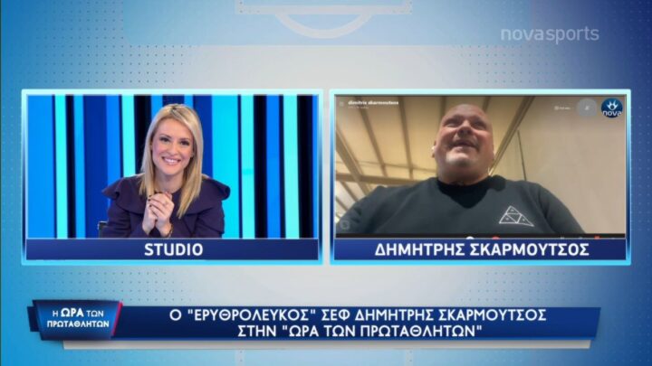 Ο γνωστός σεφ Δημήτρης Σκαρμούτσος φιλοξενήθηκε στην εκπομπή «Η ώρα των πρωταθλητών» της NOVA λίγη ώρα πριν τη σέντρα στο ντέρμπι ΠΑΟΚ – Ολυμπιακός για την 6η αγωνιστική της Super League.