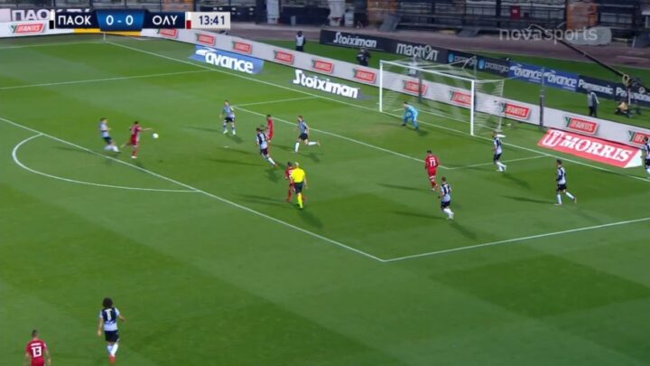Ο Γάλλος αμυντικός μέσος αξιοποίησε το γύρισμα του Φορτούνη από τα δεξιά και έπιασε το σουτ, ο Πασχαλάκης έκανε την επέμβαση και με στατική την άμυνα του ΠΑΟΚ ο Εμβιλά πήρε το… ριμπάουντ αλλά η μπάλα κατέληξε στο δοκάρι. Στη συνέχεια της φάσης ο Καμαρά σούταρε, αλλά η μπάλα έφυγε ξυστά από το αριστερό δοκάρι του Πασχαλάκη.