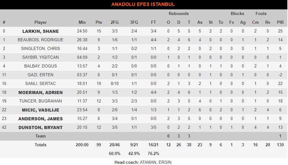 Η ομάδα του Αταμάν έκανε τα… απολύτως απαραίτητα απέναντι στην ομάδα του Κουρτινάιτις και με πρωταγωνιστή τον Σανλί (19π. με 8/10 δίποντα) κυριάρχησε στη ρακέτα και άρπαξε το ροζ φύλλο αγώνα που την έβαλε στην οχτάδα με ρεκόρ 11-9 και δύο παιχνίδια περισσότερα από τον Ολυμπιακό που θα δώσει δύο διαδοχικά ματς με τη Βιλερμπάν.