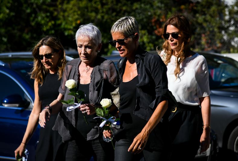 Kρατώντας λουλούδια στα χέρια έφτασαν στο κοιμητήρια η Μαρία-Ελένη Λυκουρέζου, η Τζένη Μπαλατσινού και η Βαλέρια Χριστοδουλίδου.