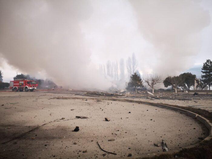 Αυτόπτες μάρτυρες μίλησαν για μικρές εστίες φωτιάς μετά την έκρηξη. Το τριώροφο ξενοδοχειακό συγκρότημα μετατράπηκε σε άμορφη μάζα.