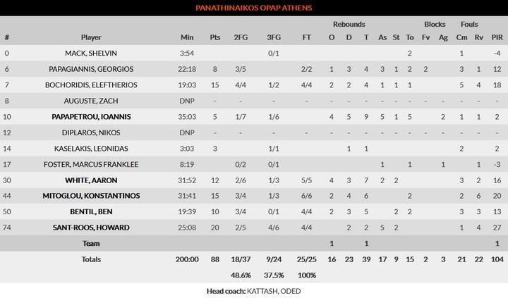 Είναι μία κακή ήττα για τον Ολυμπιακό, που βλέπει την οκτάδα να απομακρύνεται, αλλά αυτό που ενοχλεί περισσότερο είναι η εμφάνιση. Οι αθλητές του Γιώργου Μπαρτζώκα δεν έπαιξαν με συγκέντρωση και πάθος, χάνοντας σωρηδόν ριμπάουντ και 8 βολές (11/19), ενώ οι Πράσινοι μέτρησαν 25/25 βολές, δείγμα της συγκέντρωσης που είχαν στην αναμέτρηση. Παράλληλα, ο Παναθηναϊκός μάζεψε 13 ριμπάουντ περισσότερα (26-39), ενώ μέτρησε συνολικά 16 επιθετικά ριμπάουντ έναντι 9 των Πειραιωτών, που δεν έβγαλαν επιθετικότητα και ήταν μαλθακοί πάνω στο παρκέ.