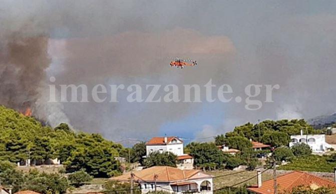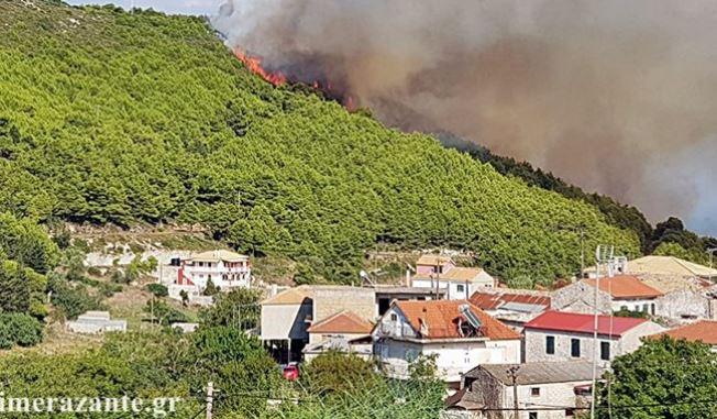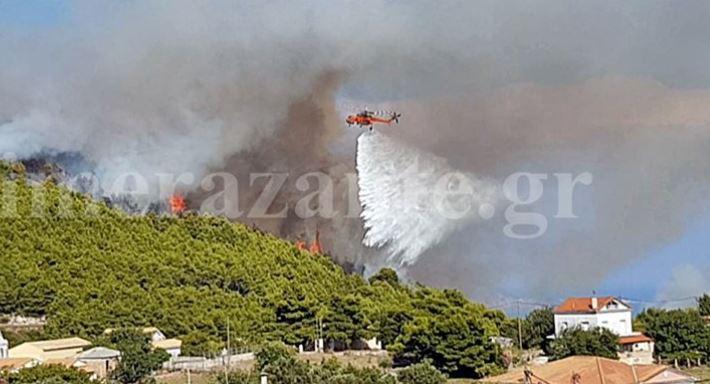 Η πύρινη λαίλαπα κατακαίει τη Ζάκυνθο, ξυπνώντας μνήμες από τις περυσινές καταστροφικές πυρκαγιές. Πρόκειται ουσιαστικά για δύο πυρκαγιές που ξέσπασαν σε δυο διαφορετικές περιοχές, μια στο Μαχαιράδο και μια στον Κοιλιωμένο (περιοχή Καταλούπου).