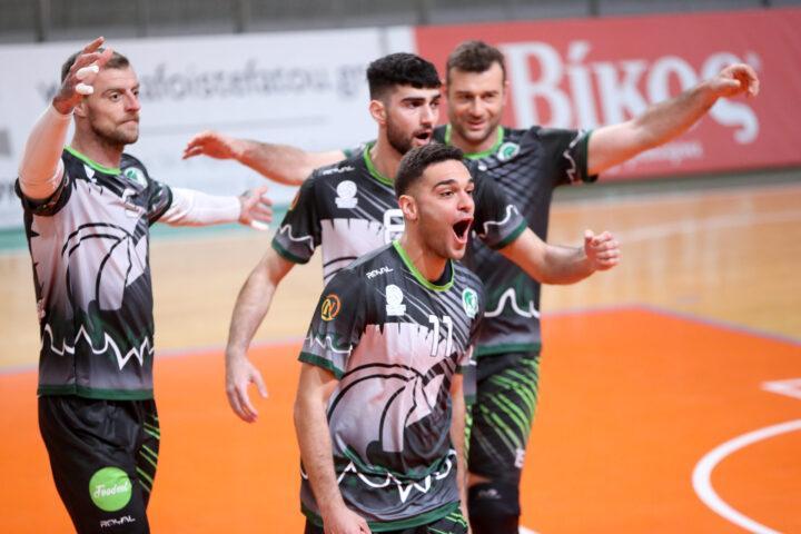 Οι γηπεδούχοι παρά τα πολλά προβλήματα τους και με τον νεαρό Δορδοκίδη στο κέντρο να κερδίζει αρκετές μάχες στο φιλέ (αγωνίζεται δανεικός από τον Ολυμπιακό) πήραν πολύ εύκολα τα δύο πρώτα σετ, με τους Πράσινους να αντιδρούν στο τρίτο και να καταρρέουν στους τελευταίους πόντους του τέταρτου σετ.