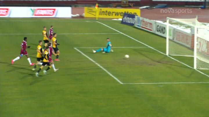 Ο μεσοεπιθετικός της ομάδας του Τζιανλούκα Φέστα πήρε την πάσα του Μουκαντζό και με διαγώνιο σουτ νίκησε τον Αθανασιάδη.
