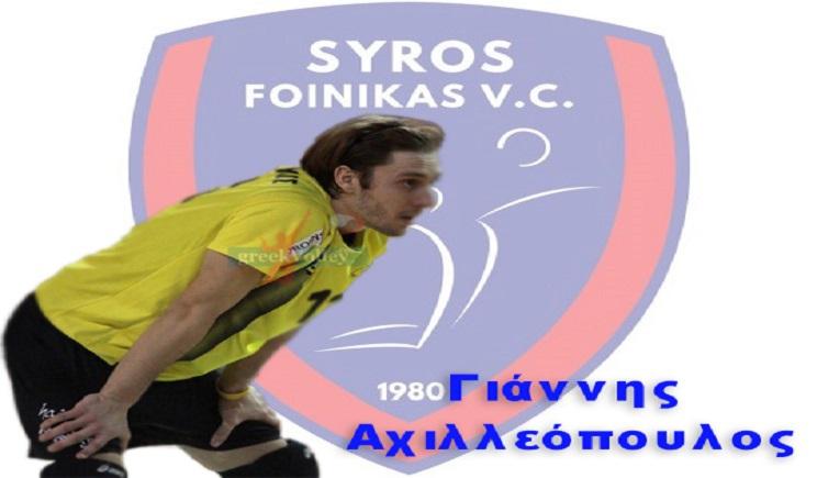 Η ομάδα του Φοίνικα Σύρου ανακοίνωσε την απόκτηση του Γιάννη Αχιλλεόπουλου. Ο 29χρονος λίμπερο αναμένεται να αποτελέσει μια ποιοτική λύση, στο ρόστερ της νησιωτικής ομάδας.