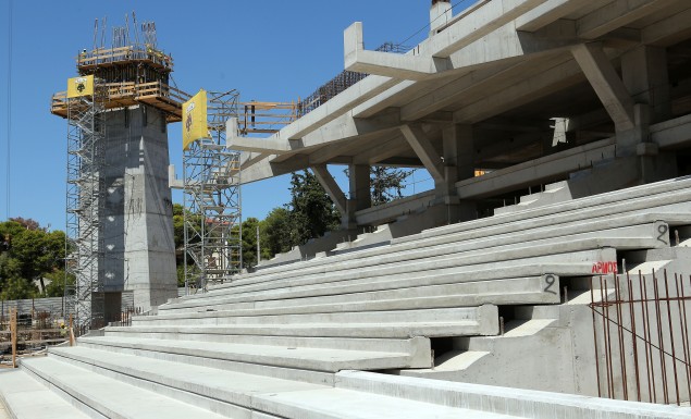 Με ταχύτατους ρυθμούς συνεχίζονται οι εργασίες κατασκευής του νέου ιδιόκτητου γηπέδου της ΑΕΚ στην Νέα Φιλαδέλφεια.