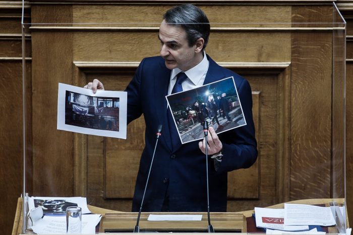 Και απευθυνόμενος στον Αλέξη Τσίπρα, ο Κυριάκος Μητσοτάκης τον κατηγόρησε πως: «Εσείς χρησιμοποιήσατε τα ΜΑΤ και την Αστυνομία για να προστατεύσετε την δική σας εικόνα. Κάνατε προληπτικές προσαγωγές πριν από τις ομιλίες σας; Εξαρτάται από ποια πλευρά είστε όταν πέφτουν οι μολότοφ, αυτό δεν είχατε πει κ. Τσίπρα στον κ. Τζαβάρα».