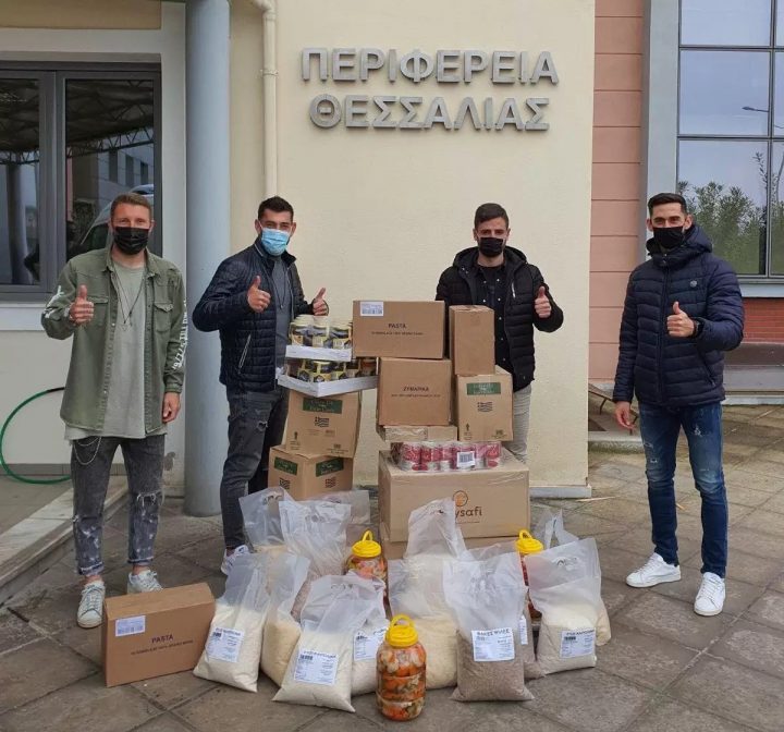 Οι Φιόριν Ντουρμισάι (ΑΕΛ), Κώστας Χατζής, Κώστας Σκούπρα και Κώστας Καρρίκι (Απολλων Λάρισας) ανέλαβαν να μεταφέρουν και να μοιράσουν τα δέματα στους σεισμόπληκτους της Ελασσόνας και των γύρω χωριών.