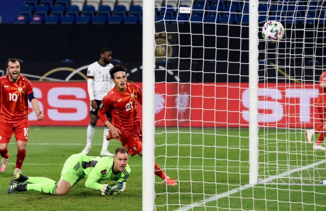 Η εθνική Γερμανίας ηττήθηκε με 2-1 από τη Β.Μακεδονία στην μεγαλύτερη έκπληξη της χθεσινής βραδιάς στα προκριματικά του Παγκοσμίου Κυπέλλου με τον γερμανικό έντυπο Τύπο να χρησιμοποιεί «σκληρές» εκφράσεις για την επίδοση της ομάδας του… φευγάτου, Γιοακίμ Λεβ.
