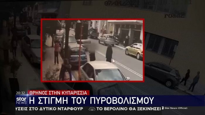 Ακολούθως, με το περίστροφο στο χέρι βγήκε και άρχισε να περπατά πότε νευρικά και πότε πιο ήρεμος στο πεζοδρόμιο και το δρόμο μπροστά από το κατάστημα. Μάλιστα, κάποια στιγμή πλησίασε και πάλι την είσοδο του καταστήματος, είπε κάτι και άρχισε ξανά να περπατά. Από την ώρα που πυροβόλησε και βγήκε από το κατάστημα και μέχρι την ώρα που αποχώρησε από το σημείο, οι κάμερες διπλανών επιχειρήσεων τον έχουν καταγράψει επί δύο ολόκληρα λεπτά να περπατά στο πεζοδρόμιο και το δρόμο.