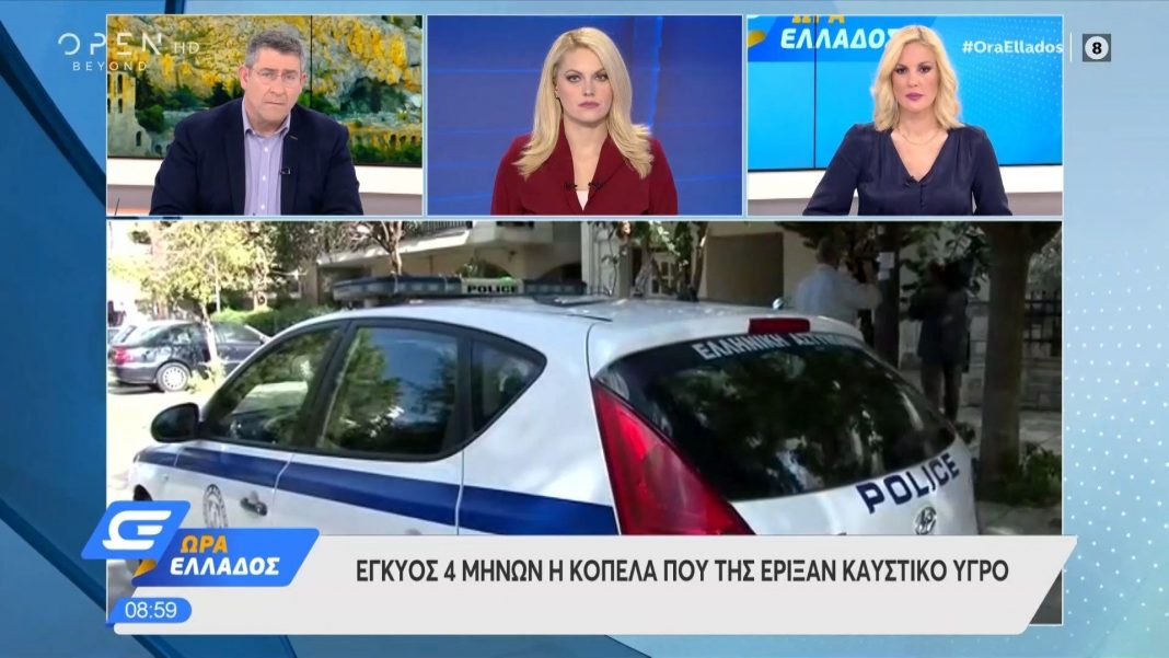 Όπως μετέδωσε η πρωινή εκπομπή του ΑΝΤ1 «Καλημέρα Ελλάδα», ήταν 11.30 το βράδυ όταν η γυναίκα περπατούσε στην οδό Ηπείρου. Ένα αυτοκίνητο την πλησίασε, βγήκε ο οδηγός, την πλησίασε και την αγκάλιασε από πίσω, βάζοντας στο πρόσωπό της ένα πανί εμποτισμένο με καυστικό υγρό.