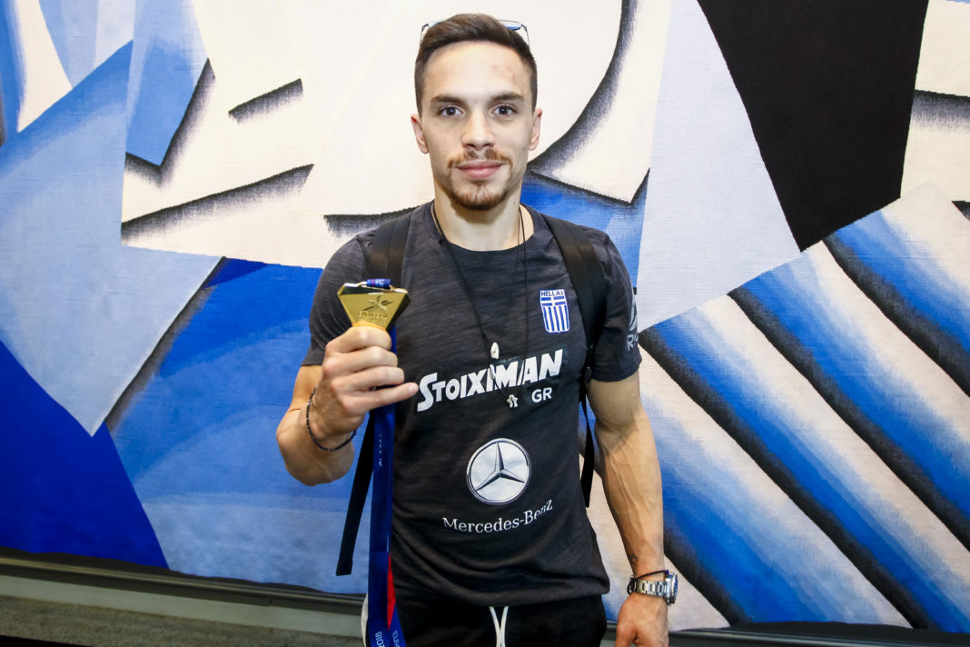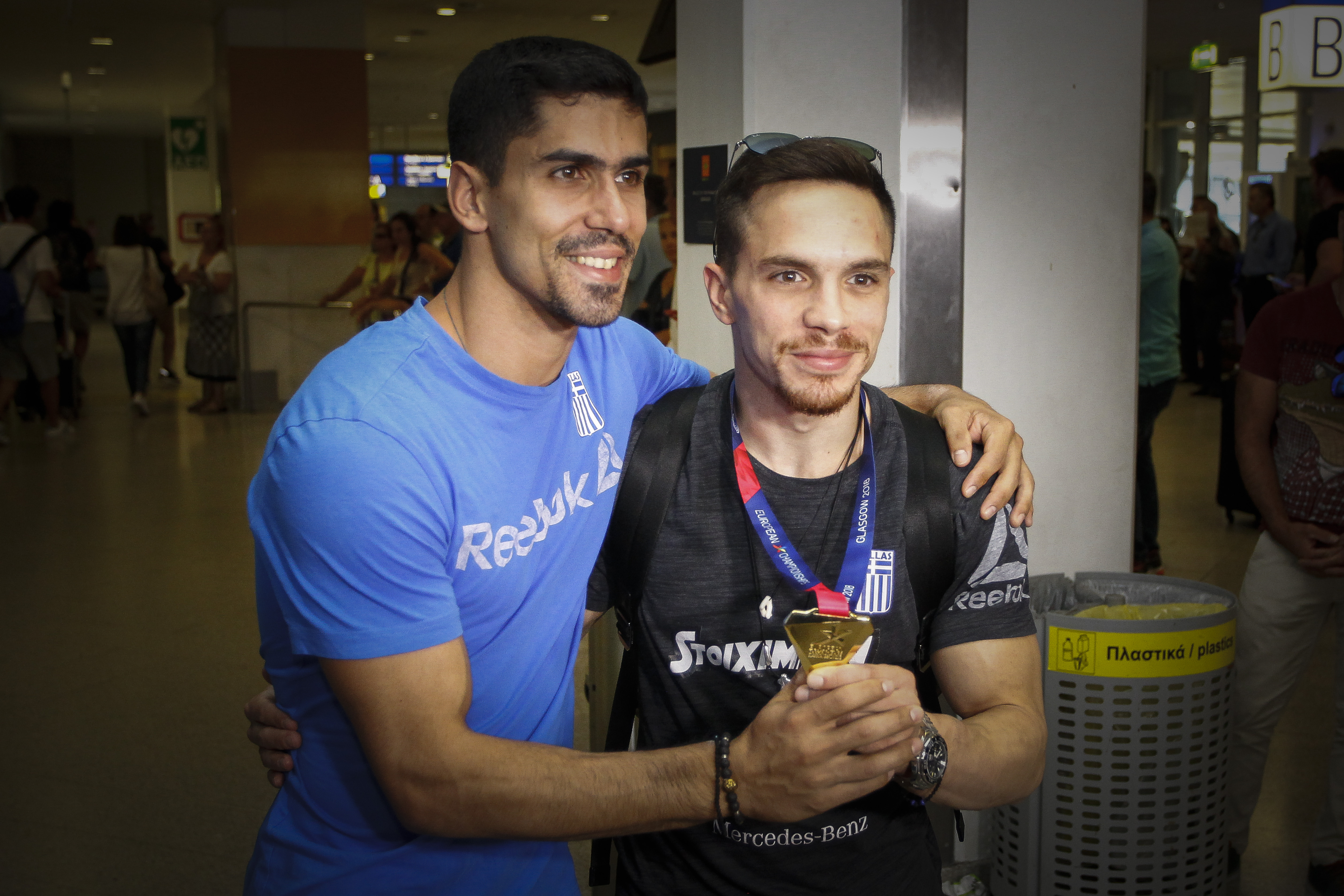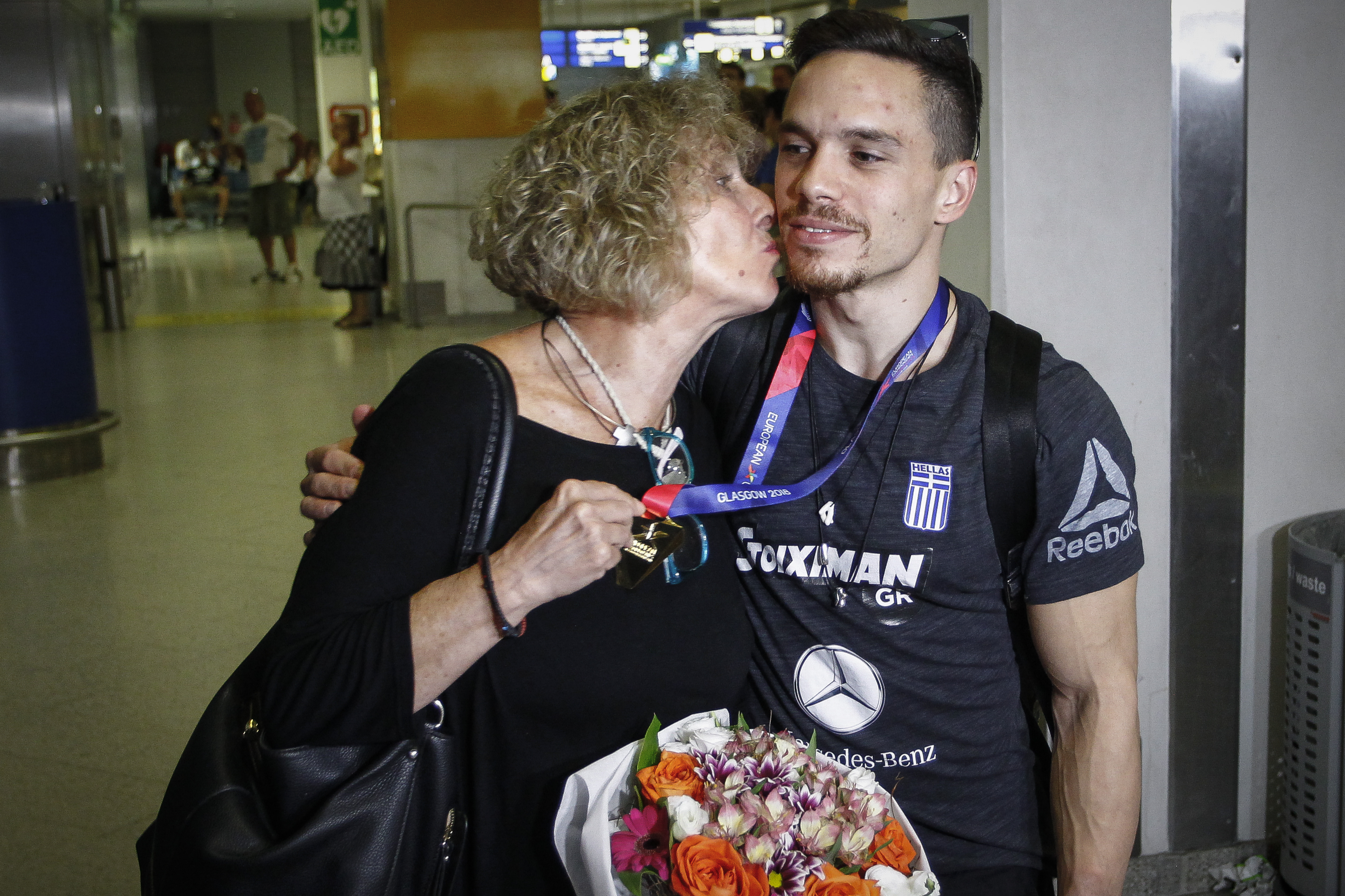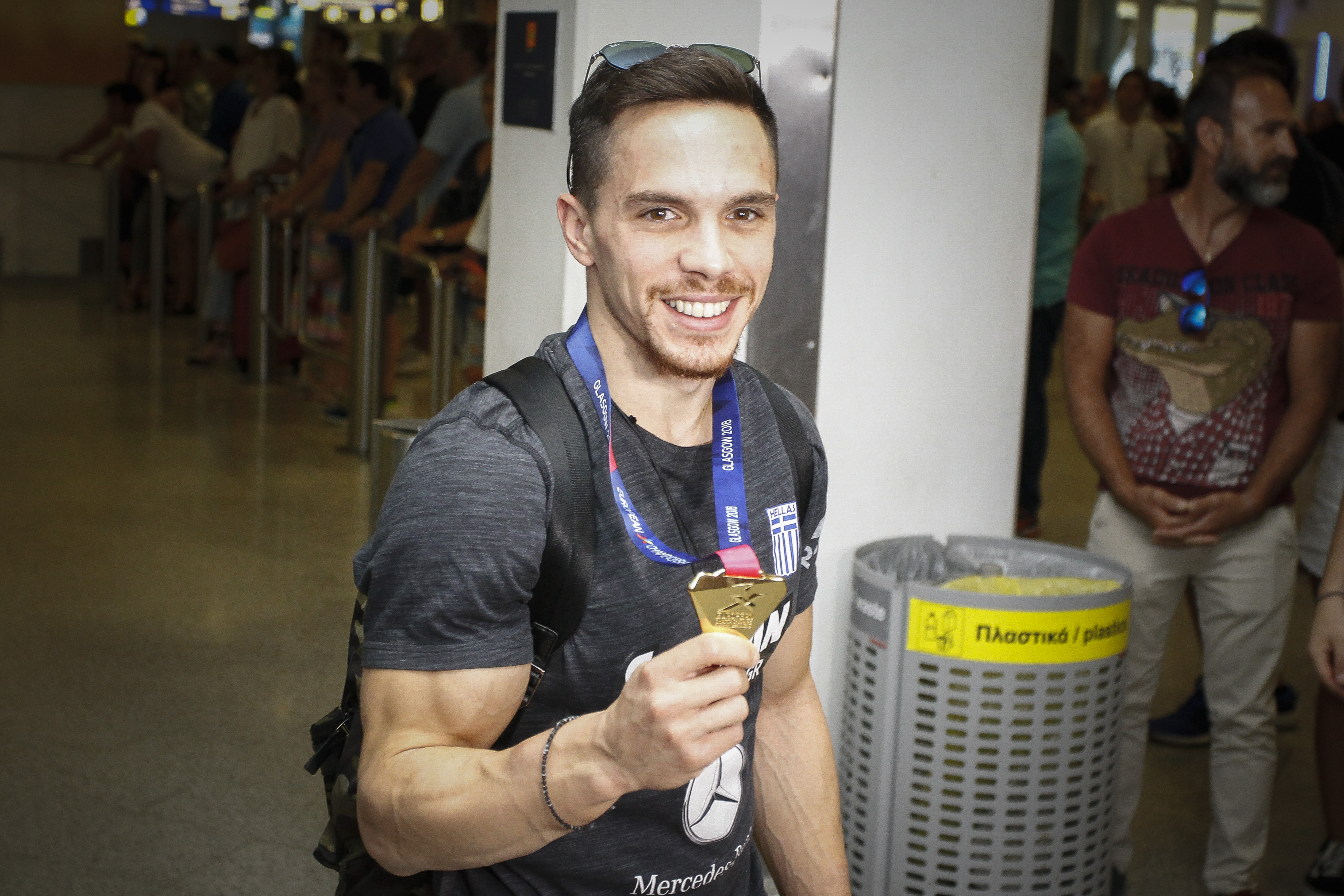 Την επομένη της υπεράσπισης του τίτλου του στο Ευρωπαϊκό Πρωτάθλημα της Γλασκόβης, ο άρχοντας των κρίκων έφτασε στο «Ελ. Βενιζέλος», όπου τον υποδέχθηκαν οι πιο φανατικοί του υποστηρικτές, τα μέλη της οικογένειάς του.