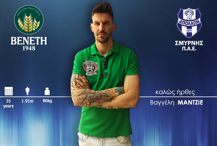 «Η ΠΑΕ Απόλλων Σμύρνης ανακοινώνει τη συμφωνία με τον ποδοσφαιριστή Βαγγέλη Μάντζιο. Γεννημένος στις 22 Απριλίου 1983, αγωνίζεται ως επιθετικός. Στο παρελθόν έχει παίξει σε Λεβαδειακό, Ατρόμητο, Μπακού, ΟΦΗ, Μαρίτιμο, Ανόρθωση, Άιντραχτ Φρανκφούρτης, Παναθηναϊκό και Πανιώνιο. Εχει επτά συμμετοχές με τη φανέλα της Εθνικής ομάδας.»