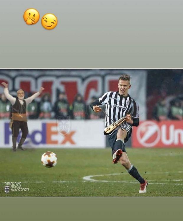 Ο Γιώργος Σαββίδης «ανακοίνωσε» τη μεταγραφή του Πόντους Βέρνμπλουμ με έναν άκρως ιδιαίτερο τρόπο. Ο Σουηδός μετατράπηκε σε… Πόντιο μετά το σχετικό φωτοσοπάρισμα και στη μια φωτογραφία φορά την παραδοσιακή ζίπκα, ενώ στην άλλη είναι ντυμένος με την εμφάνιση του ΠΑΟΚ και εν ώρα αγώνα παίζει ποντιακή λύρα!