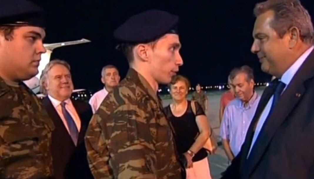 Μετά από μια μικρή καθυστέρηση, οι δύο στρατιωτικοί κατέβηκαν από το αεροσκάφος φορώντας φόρμες εκστρατείας και όπως προστάζει η ιδιότητά τους χαιρέτησαν πρώτα τον υπουργό Εθνικής Αμυνας, Πάνο Καμμένο. Μετά από μια σύντομη συνομιλία με τον υπουργό, οι δύο στρατιωτικοί ρίχτηκαν στις αγκαλιές των γονιών τους και ακολούθησαν ιδιαίτερα συγκινητικές στιγμές, καθώς λίγο μετά οι γονείς του ενός αγκάλιασαν το παιδί του άλλου.