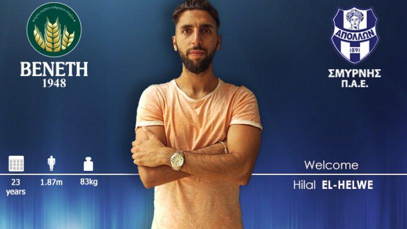 «Η ΠΑΕ Απόλλων Σμύρνης ανακοινώνει την απόκτηση του ποδοσφαιριστή Χιλάλ Ελ Χέλβε. Γεννημένος στις 24 Νοεμβρίου 1994, στο Αννόβερο, αγωνίζεται ως επιθετικός. Έχει αγωνιστεί στη Χάλεσερ, τη 2η ομάδα της Βόλφσμπουργκ και στην Χαβέλσε. Είναι διεθνής με την Εθνική Λιβάνου με την οποία έχει 15 συμμετοχές και τρία γκολ».