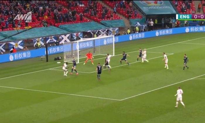 Ο ΜακΤόμινεϊ παραλίγο να κάνει ένα μεγάλο «δώρο» στους Άγγλους, όμως τα «τρία λιοντάρια» δεν το εκμεταλλεύτηκαν. Ο Μάουντ μόλις μισό μέτρο μπροστά από την εστία κατάφερε να στείλει την μπάλα άουτ, μετά την πάσα του Στέρλινγκ.
