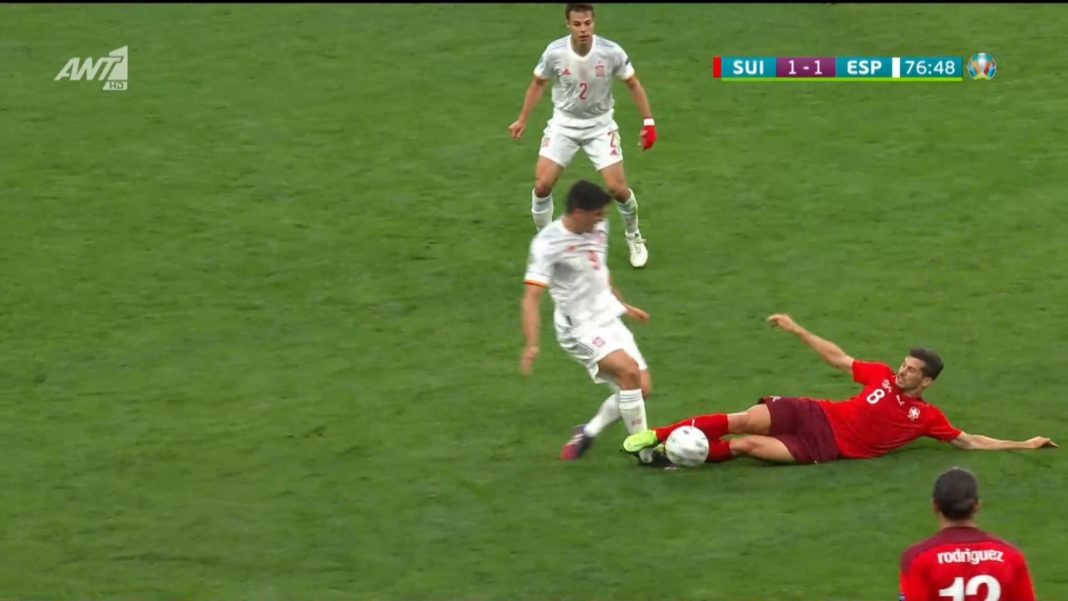 Με δέκα παίκτες έμεινε η Ελβετία στο 77ο λεπτό της αναμέτρησης με την Ισπανία στην Αγία Πετρούπολη.