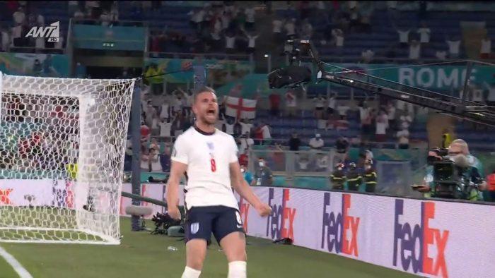 Ο Τζόρνταν Χέντερσον με καρφωτή κεφαλιά έκανε το 0-4 για την Αγγλία μετά από εκτέλεση κόρνερ και έδωσε διαστάσεις θριάμβου στη διαφαινόμενη νίκη της ομάδας του απέναντι στην Ουκρανία στη Ρώμη.