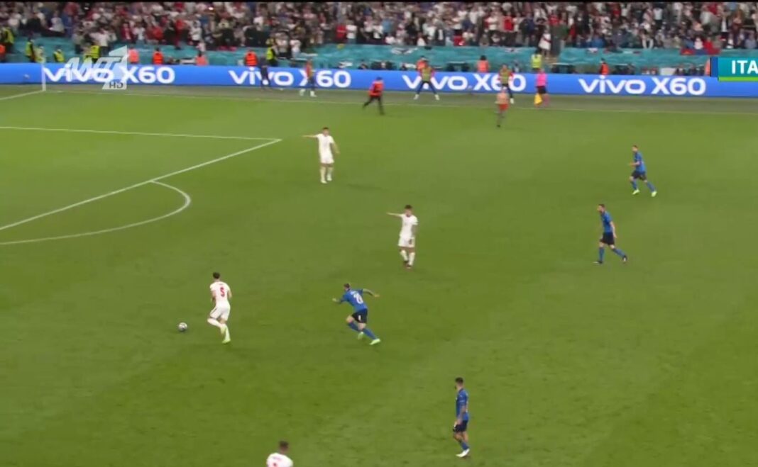 Στον τελικό του EURO η ίδια ιστορία. Ένα λεπτό πριν τη λήξη του 90λεπτου, οπαδός εισέβαλε στον αγωνιστικό χώρο από τη γραμμή του πλαγίου άουτ, έτρεξε στο γήπεδο βγάζοντας την μπλούζα του, με τους σεκιούριτι να τρέχουν και να τον απομακρύνουν.