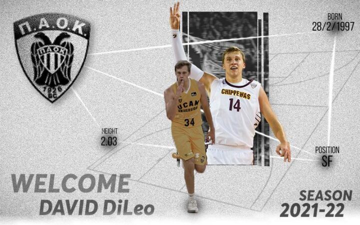«Η ΚΑΕ ΠΑΟΚ ανακοινώνει την συμφωνία με τον Αμερικανό καλαθοσφαιριστή David DiLeo, ο οποίος θα αγωνιστεί στην ομάδα μας την αγωνιστική περίοδο 2021-22. Καλωσορίζουμε τον David DiLeo στην οικογένεια του ΠΑΟΚ.