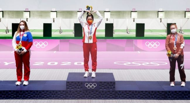 H Kινέζα Γιανγκ Κιαν κέρδισε το πρώτο χρυσό μετάλλιο των Ολυμπιακών Αγώνων του Τόκιο 2020, καταλαμβάνοντας την πρώτη θέση στο αεροβόλο τουφέκι 10 μέτρων γυναικών, κάνοντας μάλιστα Ολυμπιακό ρεκόρ με 251,8 βαθμούς.