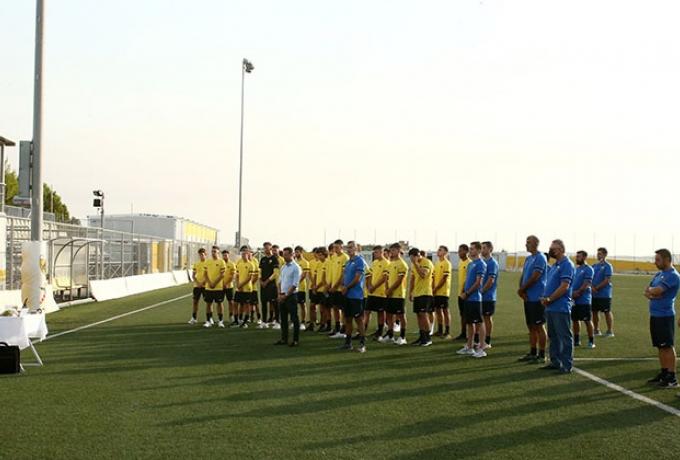 Στην πρώτη προπόνηση ήταν παρόντες οι ποδοσφαιριστές: Αγγελος Αγγελόπουλος, Παναγιώτης Γκίνης (τερματοφύλακας) Μανώλης Αρβανίτης, Γιώργος Γιαννούτσος, Γιώργος Κορνέζος, Θανάσης Κώτσιος, Γιώργος Μαντζουρανάκης, Μιχάλης Μπούσης, Κώστας Σταμούλης (αμυντικοί) Χρήστος Γιούσης, Τζούντα Γκαρσία, Γιάννης Κορομηλάς, Πάρης Μπάμπης, Μανώλης Τσιόκρης, Γιάννης Πιτιλάκος (μέσοι) Παναγιώτης Γεωργέας, Αλέξης Γκολφίνος, Πέταρ Καρακλάιτς, Γιάννης Ιατρούδης, Αποστόλης Χριστόπουλος, Μιχάλης Κοσίδης και Ευθύμης Χριστόπουλος (επιθετικοί). Δεν προπονήθηκαν λόγω προβλημάτων τραυματισμών ο τερματοφύλακας Βασίλης Χατζηεμμανουήλ, ο αμυντικός Στέφανος Κάτσικας και ο μέσος Λαέρτ Πάπα. Αύριο και μεθαύριο η ομάδα θα κάνει πρωινές προπονήσεις, ενώ την Κυριακή θα προπονηθεί πρωί και απόγευμα.