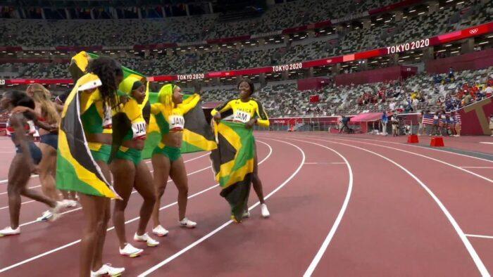 Η Τζαμάικα με τις Μπριάνα Γουίλιαμς, Ελέιν Τόμπσον, Σέλι Αν Φρέιζερ και Σερίκα Τζάκσον, κατέκτησε με 41.02 το χρυσό μετάλλιο στην σκυταλοδρομία 4×100μ. γυναικών, σημειώνοντας νέο εθνικό ρεκόρ, στο πλαίσιο της 8ης ημέρας των αγώνων στίβου στους Ολυμπιακούς του Τόκιο.