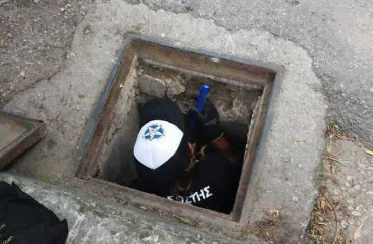 Χρειάστηκε μάλιστα να μπουν στο φρεάτιο δύο διασώστες, καθώς το ένα πόδι του σκυλάκου είχε σκαλώσει κάπου και δεν ήθελαν να τον τραυματίσουν.