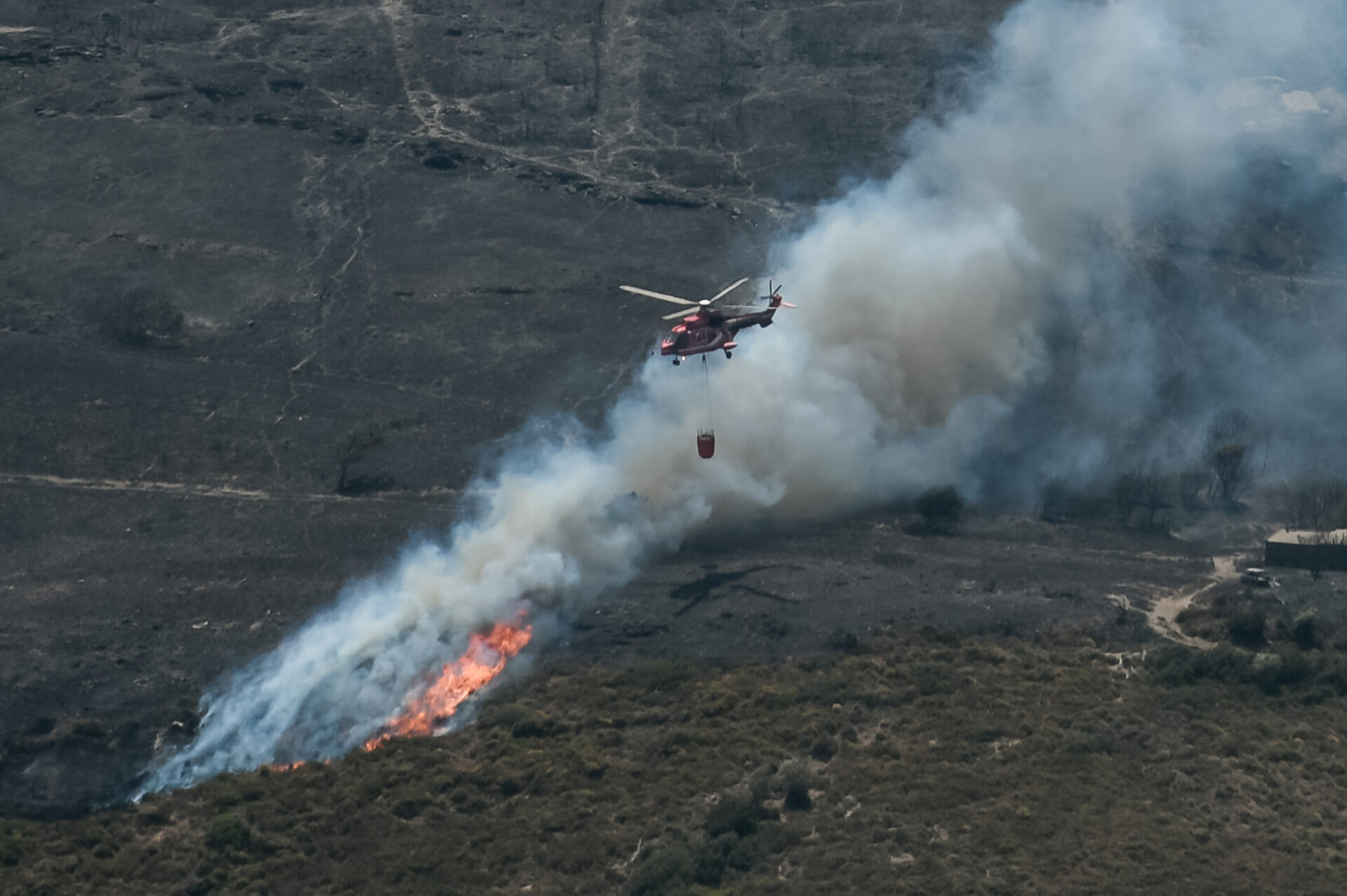 Στην ευρύτερη περιοχή συνεχίζουν να επιχειρούν 64 πυροσβέστες με 26 οχήματα, μια ομάδα πεζοπόρου τμήματος, ενώ από αέρος συνδράμουν 9 ελικόπτερα και ένα αεροσκάφος. Σημειώνεται ότι συνδράμουν εθελοντές πυροσβέστες, υδροφόρες ΟΤΑ, το Λιμενικό Σώμα και ο Ερυθρός Σταυρός.