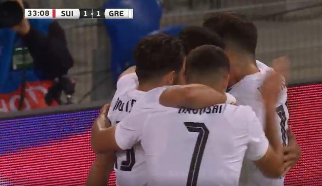 Η Ελλάδα ισοφάρισε την Ελβετία στη Βασιλεία στο 34ο λεπτό της φιλικής αναμέτρησης των δύο ομάδων.