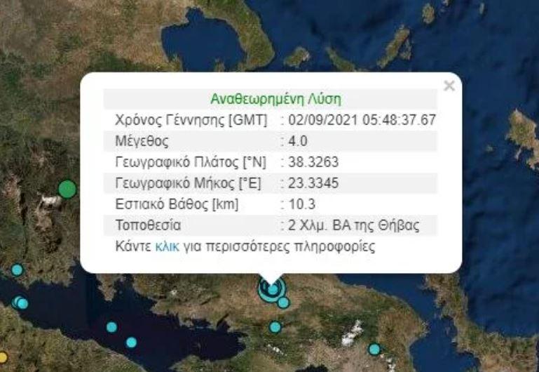 Σεισμός 4 βαθμών της κλίμακας Ρίχτερ σημειώθηκε ανατολικά της Θήβας το πρωί της Πέμπτης.