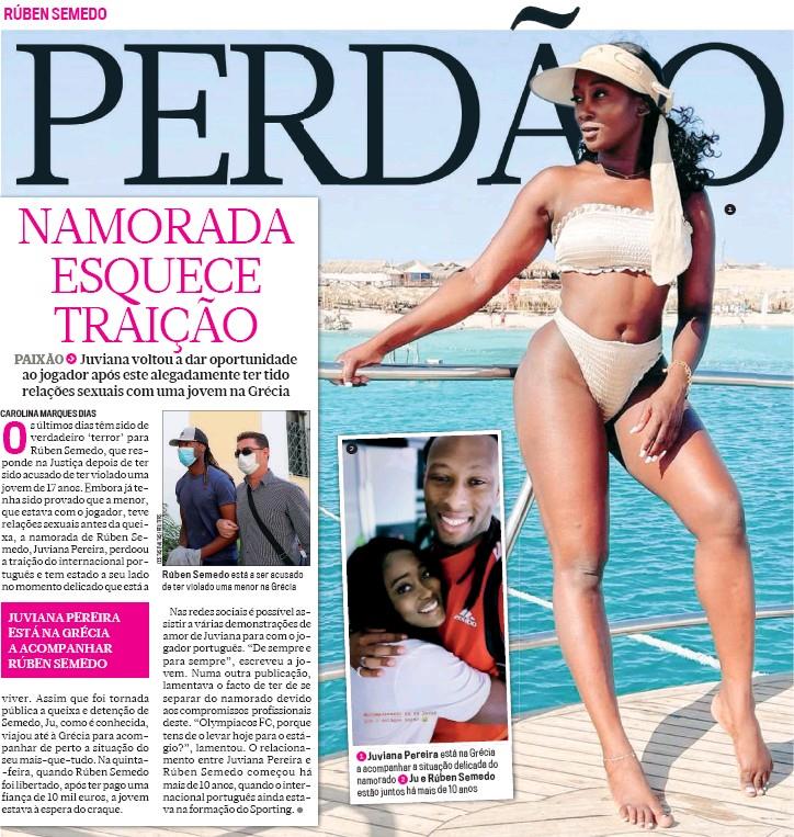 Σύμφωνα με τα πορτογαλικά Μέσα, η Ζουβιάνα Περέιρα βρίσκεται στο πλευρό του παίκτη του Ολυμπιακού, καθώς πιστεύει την εκδοχή περί συναινετικού σεξ, έχοντας συγχωρέσει την προδοσία του.