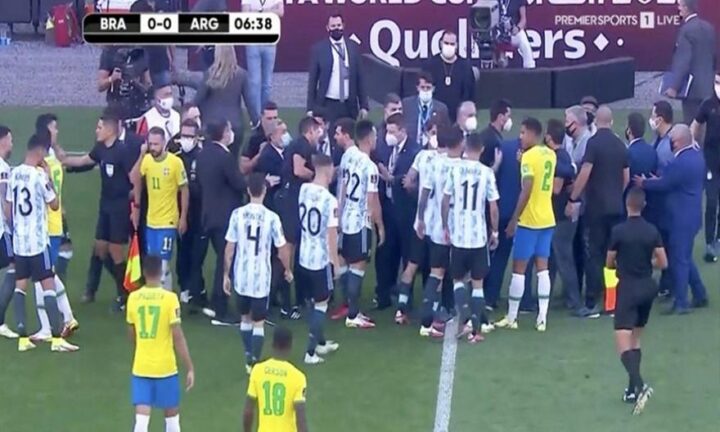 Video of World Cup qualifier being stopped in Brazil over English-based Argentina players’ quarantine status with health officials going on the pitch pic.twitter.com/vKFvcdIycG