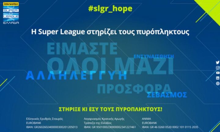 Με το hashtag #slgr_hope η Super League θα συντονίσει την εκστρατεία ενημέρωσης και ευαισθητοποίησης υπέρ των πυρόπληκτων.