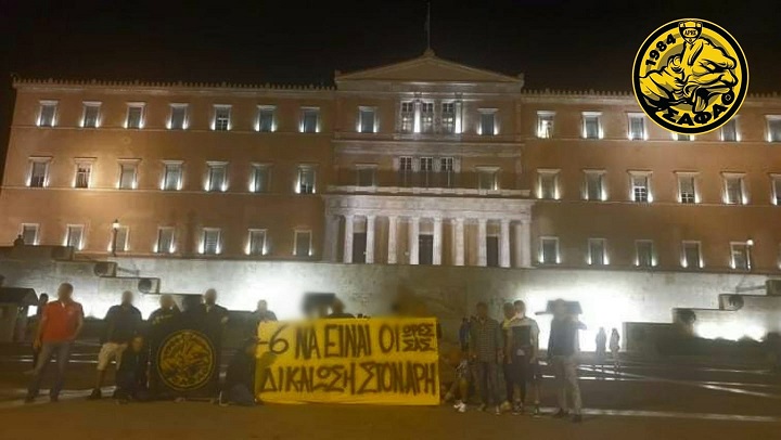 Φίλοι των κιτρινόμαυρων από το σύνδεσμο της Αθήνας βρέθηκαν το βράδυ της Τετάρτης 8/9 έξω από τη Βουλή, κρατώντας πανό που ζητούσε τη δικαίωση της ομάδας τους.
