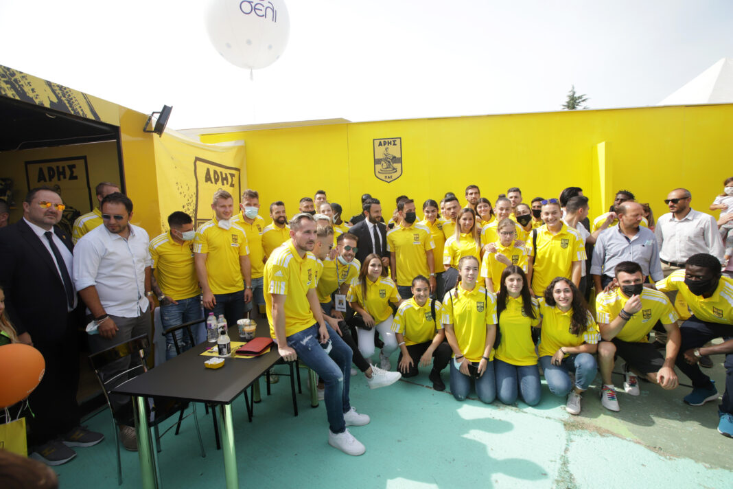Οι παίκτες του Άρη βρέθηκαν το πρωί του Σαββάτου (12/09) στην 85η ΔΕΘ, εκεί όπου είχαν την ευκαιρία να συνομιλήσουν με οπαδούς των Κιτρίνων, που με τη σειρά τους έδωσαν το σύνθημα για νίκες και επιτυχίες μέσα στη σεζόν, αρχής γενομένης από το ματς με τον ΟΦΗ τη Δευτέρα.
