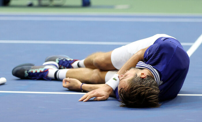 Αφού κέρδισε τον τελευταίο πόντο στον τελικό του US Open απέναντι στον Τζόκοβιτς, ο 25χρονος Ρώσος έπεσε… ξερός στο έδαφος του Arthur Ashe, μιμούμενος σχετικό πανηγυρισμό από το δημοφιλές βιντεοπαιχνίδι.