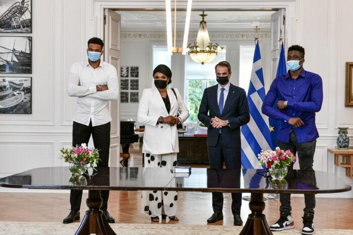 Παρουσία του πρωθυπουργού Κυριάκου Μητσοτάκη, η τελετή ορκωμοσίας της Βερόνικα Αντετοκούνμπο και του Άλεξ Αντετοκούνμπο, μητέρας και νεότερου αδελφού του Γιάννη Αντετοκούνμπο, που πολιτογραφούνται τιμητικά Έλληνες πολίτες.