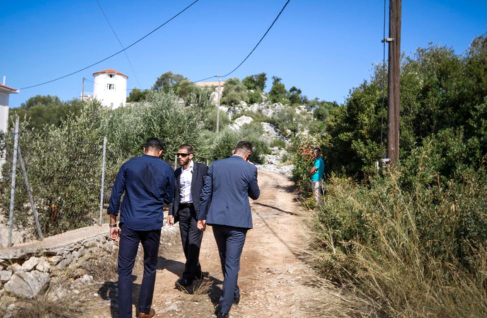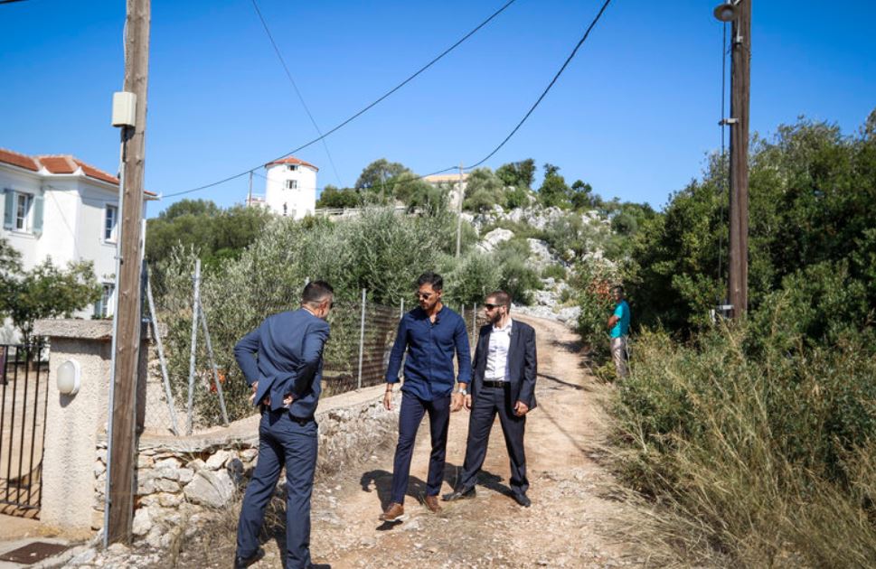 Στις φωτογραφίες φαίνεται η Περιστέρα Μπαζιάνα, οι συνοδοί του Πρωθυπουργού και η ασφάλεια που ελέγχει τον χώρο.