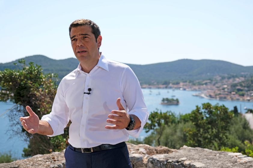 Μπορεί ο Αλέξης Τσίπρας να περπάτησε στους δρόμους στο Βαθύ και να συνομίλησε με τους πολίτες, ωστόσο σε ό,τι αφορά το διάγγελμά του επέλεξε να το απευθύνει από ένα σημείο του νησιού μακριά από κόσμο, στη θέση Κάστρο-Πανόραμα.