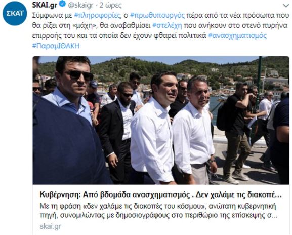Αφορμή, ένα tweet που αναρτήθηκε στον επίσημο λογαριασμό του ΣΚΑΪ στο Twitter. Το tweet είχε να κάνει με ένα άρθρο για τον επικείμενο ανασχηματισμό, ωστόσο στο τέλος της ανάρτησης είχε προστεθεί το ειρωνικό hashtag «#ΠαραμΙΘΑΚΗ»!