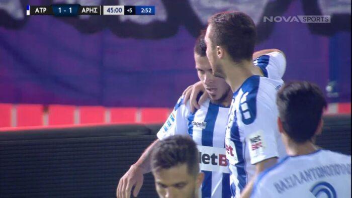 Ο Ατρόμητος ισοφάρισε στο Περιστέρι τον Άρη στις καθυστερήσεις του πρώτου ημιχρόνου με τον Σπιριντόνοβιτς.