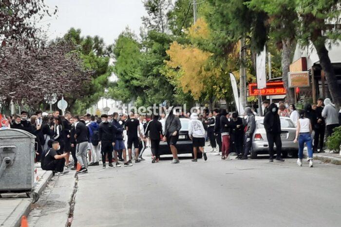 Κουκουλοφόροι έχουν στήσει οδοφράγματα έξω από το σχολείο και υπάρχει ανησυχία για επανάληψη επεισοδίων.