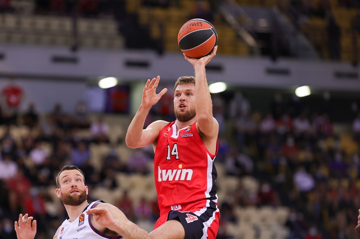 Με ένα σουτ τριών πόντων του καυτού Σάσα Βεζένκοφ ολοκληρώθηκε η πρώτη περίοδος του αγώνα του Ολυμπιακού με την Μπασκόνια.